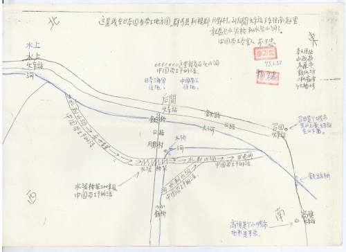 细节:在日本天皇访华期间给日本大使馆写了信但一直没有回信,每封信都介绍了我在日本当劳工的经过和图纸。我强烈要求日本政府给中国劳工赔偿工资。