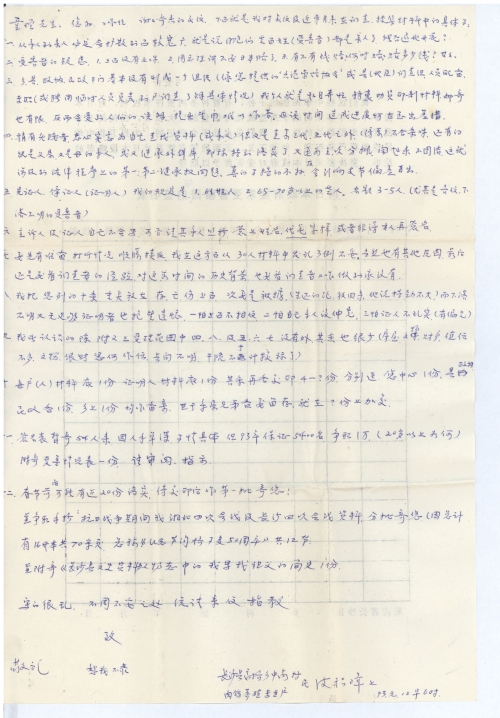 十二、春节前后可能有近20份落实,待复印后作第一批寄您!并争取手抄“抗日战争期间我湘北四次会战及长沙四次会战资料,分批寄您(因总计有16开本共70余页,总算《怀念卢沟桥事变50周年》共12节。并附寄《长沙是文史资料》人物志中的我写我祖父的简史1份。
