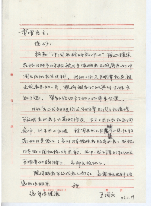 写信日期:1993-02-19