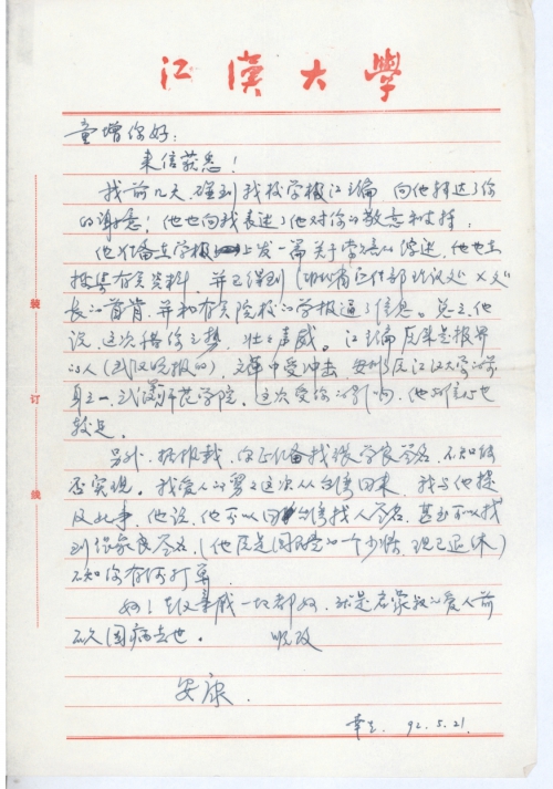 写信日期:1992-05-21