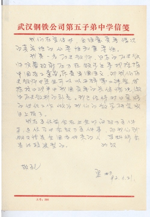 写信日期:1992-06-21