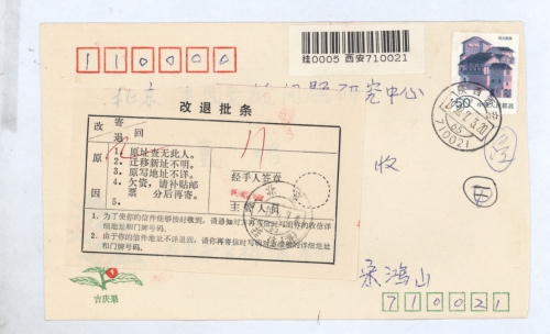写信地址:陕西省西安市