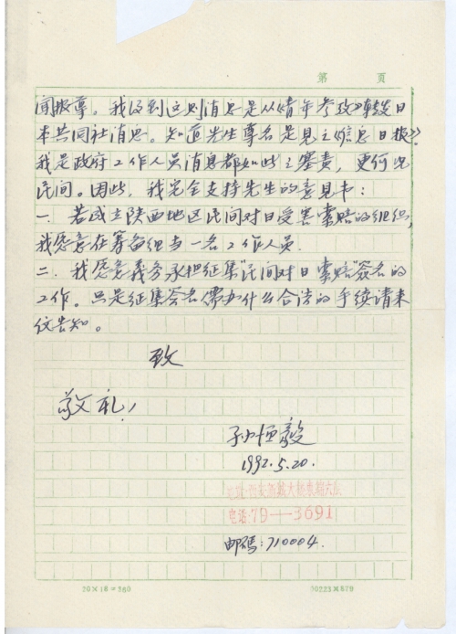 一.若成立陕西地区民间对日受害索赔的组织,我愿意在筹备组当一名工作人员。