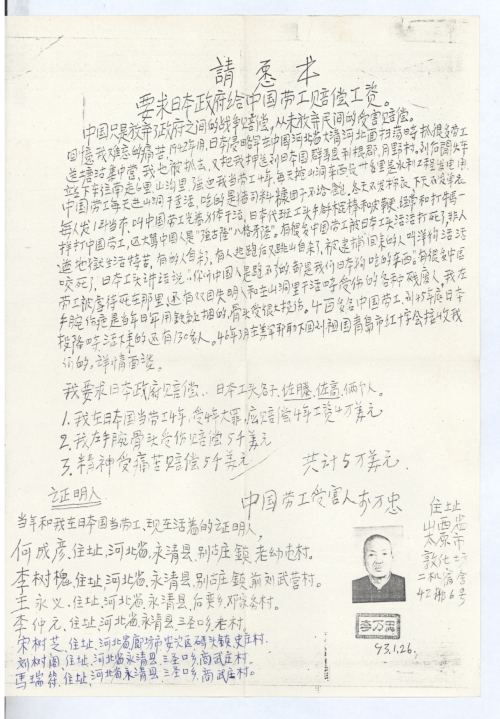 我要求日本政府赔偿,日本工头名字,佐藤、佐高俩个人。