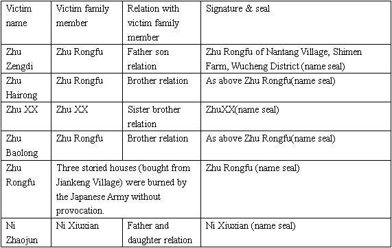 This signature form is the 19h batch of households whose victims were killed by the Japanese Army and whose houses were burned by the Japanese Army.