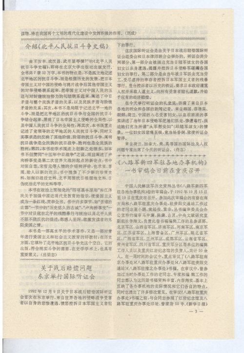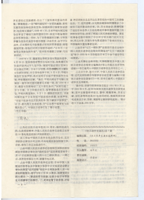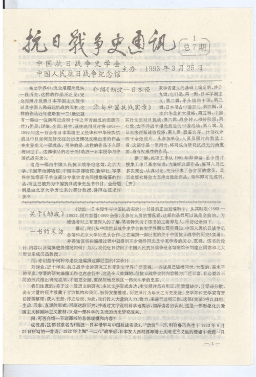 △北京大学、四川大学、中国人民抗日战争纪念馆、近代史所的部分专家学者目前正着力编辑《中国抗日战争史论著索引》一书,该书已被列入中国抗日战争史丛书规划。