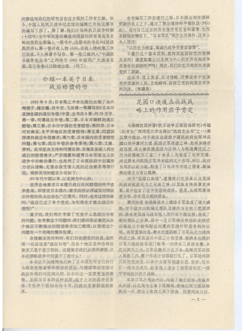 1992年8月,日本梨之术舍出版社出版了由内海爱子、越田穗、田中宏、飞田雄一等撰写的《日本对亚洲各国的战后补偿》专著。全书共8章,约25万字。第一章,何谓战后补偿;第二章,日本对朝鲜的战后赔偿;第三章,日本对中国的受害赔偿;第四章,日本对东南亚、太平洋地区的受害赔偿;第五章,同盟国俘虏的战后补偿要求;第六章,日本国内的受害赔偿问题;第七章,战后补偿的参考事例;第八章,文献、资料。此书坚决支持和同情亚洲、东南亚各国人民在战后的赔偿要求;严厉揭露和谴责日本军国主义在战争中的略的暴行;也批判了日本现政府中右翼势力否认侵略、无视各国受害人民的正当要求等等行径。现将该书的前言介绍如下: