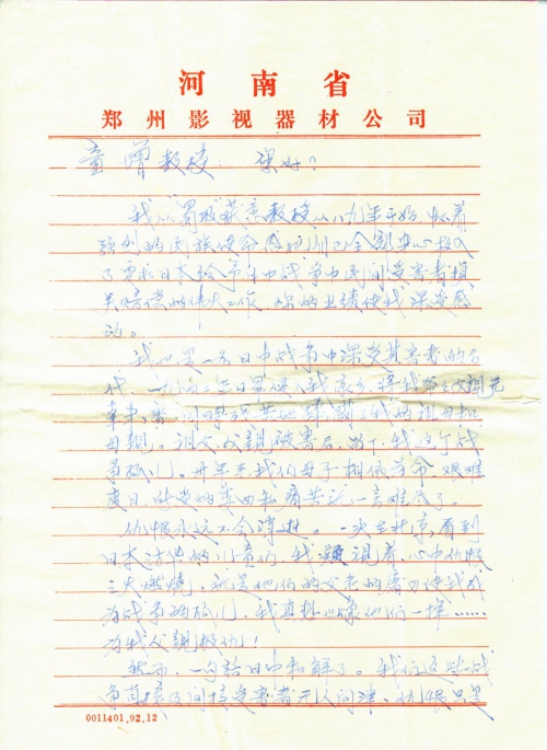 我从“蜀报”获悉教授从八九年开始,怀着强烈的民族使命感把自己全部身心投入到要求日本给予日中战争中民间受害者损失赔偿的伟大工作,你的业绩使我深受感动。