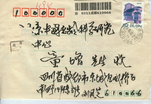 写信地址:四川省成都市