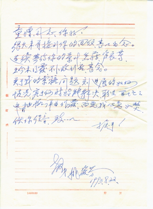 写信日期:1993-08-22