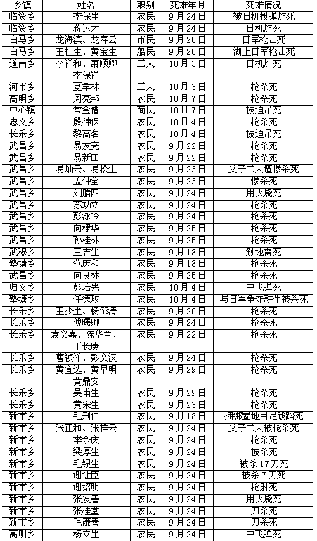1941年长沙会战原湘阴县人民殉难表