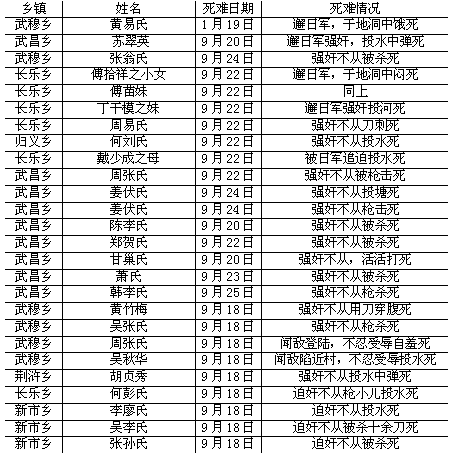 1941年原湘阴县各乡镇妇女殉难表