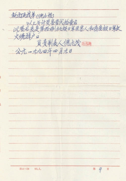 This signature form is the eighteenth batch of households whose family members were killed by the Japanese Army and whose houses were burned by the Japanese Army.