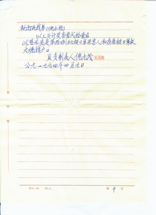 This signature form is the 18th batch of households whose victims were killed by the Japanese Army and whose houses were burned by the Japanese Army.