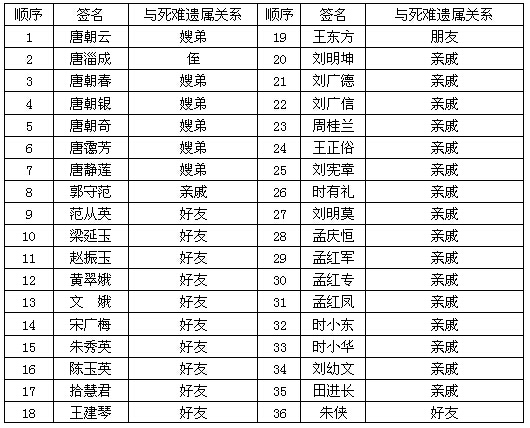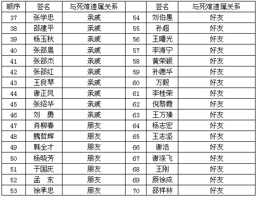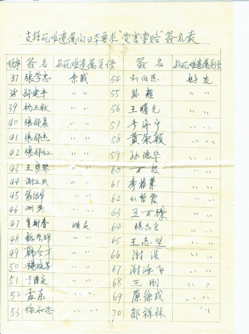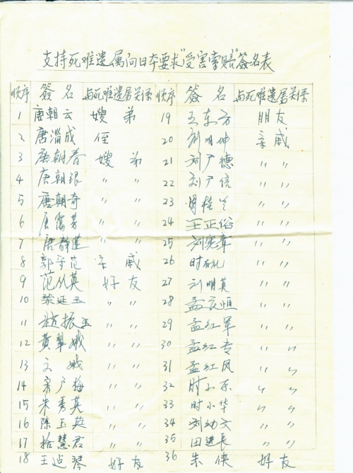 支持死难遗属向日本要求“受害索赔”签名表
