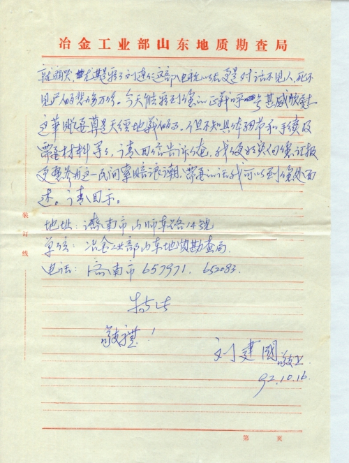 写信日期:1992-10-16