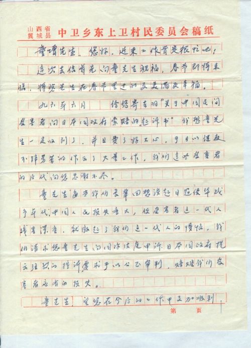 九六年六月,给您寄去的“关于中国民间受害者向日本国政府索赔的起诉书”我想童先生一定收到了,并且费了好大心,于日以继夜、不辞劳苦的作出了大量工作,我们这些受害者的后代向您感谢不尽。