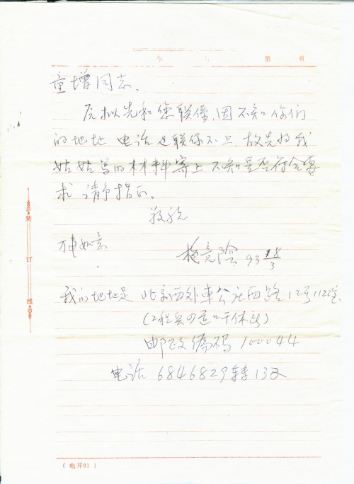 写信日期:1993-02-15