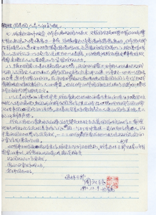 写信日期:1992-12-09