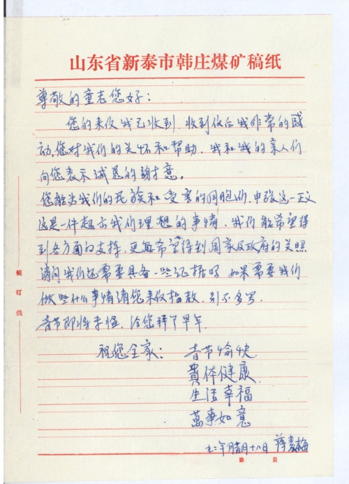 您的来信我已收到,收到信后我非常的感动,您对我们的关怀和帮助,我和我的亲人们向您表示诚恳的谢意。