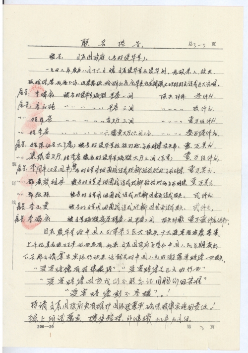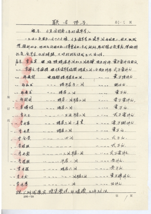 细节:邱健暾寄来整理的“联名控告书”详细的记录了日本侵华战百姓的损失以及日寇折磨百姓的残忍手段。