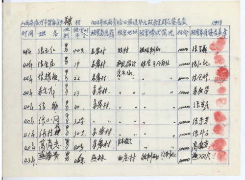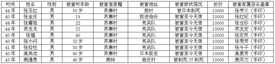 山西省临汾市贺家庄乡苏寨村   向日本政府索赔日军侵华无故杀害群众签名表