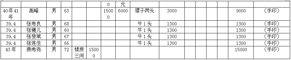 山西省临汾市贺家庄乡苏寨村 向日本政府索赔日军侵华损失财物签名表