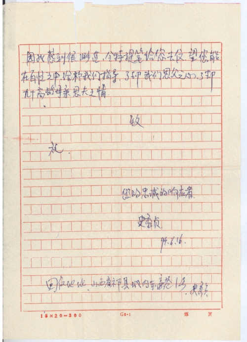 回信地址:山西省祁县城内东廉巷1号史秀贞