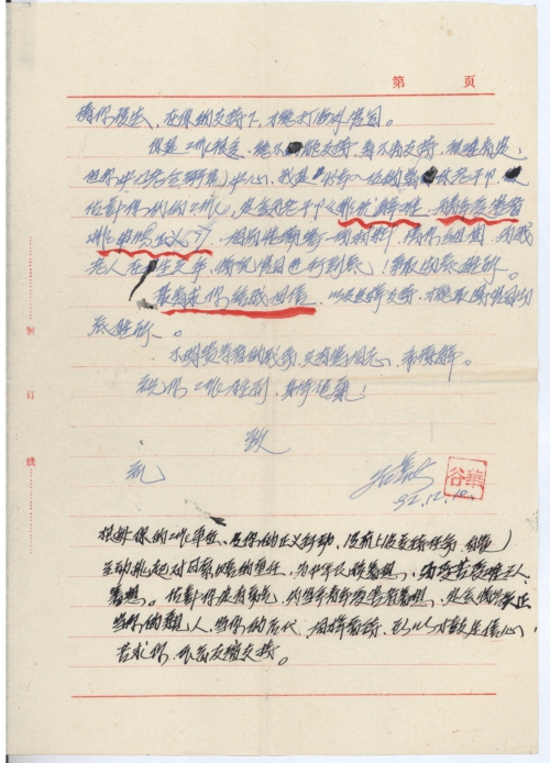 我与你从未见面。前天收到你来信一封,看了深感高兴。为什么?首先是你还看得起这个工农干部,你平易近人,精神值得学习。二是你虽出身于新社会,但能为历史受苦受难的同胞伸张正义,为受害者及被日迫害致死者,说出了他们的内心要求,遭日屠杀在九泉之下的死者得到安慰。三是你有信心,有决心,有胆量,写了长篇论文给日本大使,并正在查找国际方面的法律依据。四是你的正义行动。看来中华大国后继有人。因而高兴万分,将复多次反复的看,在你影响下,也愿为盐老区人民做点应做的事,也是老党员应尽之天责。