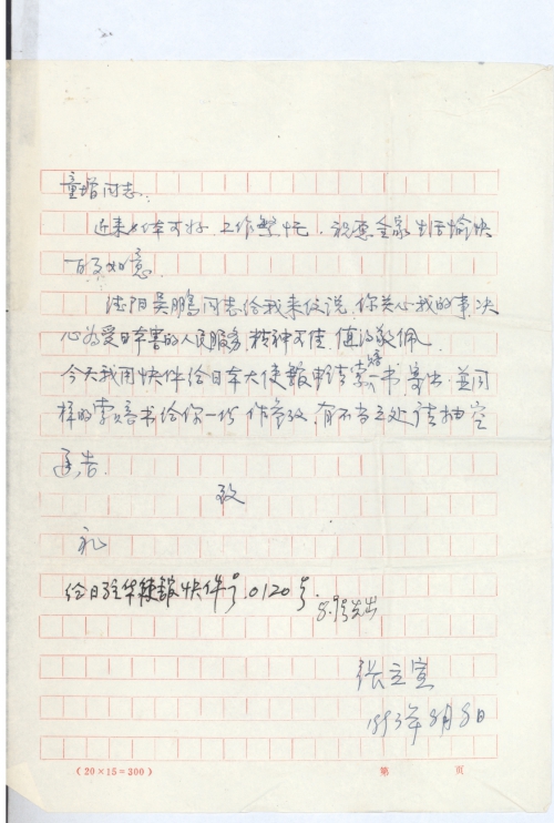 德阳吴鹏同志给我来信说:你关心我的事,决心为受日本害的人民服务,精神可[嘉],值得敬佩。