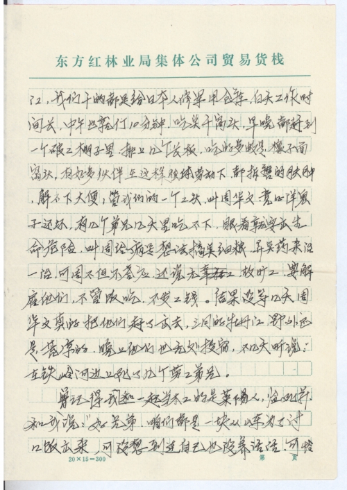 我是山东省掖县徐家乡西孙哥庄村人,现年80岁,我在一九三四年三月十二日待同灶台地区共有400多人被一个叫三毫的日本人招工来到牡丹江,我们干的都是给日本人修军用仓库,白天工作时间长,中午也就停10分钟,吃点干窝头,早晚都赶到一个破工棚里,排上几个长板,吃的多数是橡子面窝头,有好多伙伴在这样强体劳动下,都折磨的浮肿,解不下大便,管我们的一个工头,叫周华文,竟比洋鬼子还坏,有几个弟兄几天里吃不下,眼看就要出生命危险,叫周给病号想法搞点细粮,弄点药来治一治,可周不但不答应,还说无故旷工,要解雇他们,不管饭吃,不发工钱。结果没等几天周华文真的把他们赶了出去,三月的牡丹江野外还是荒凉的,晚上他们也无处投宿,不几天听说,在铁岭河边上死了几个劳工弟兄。