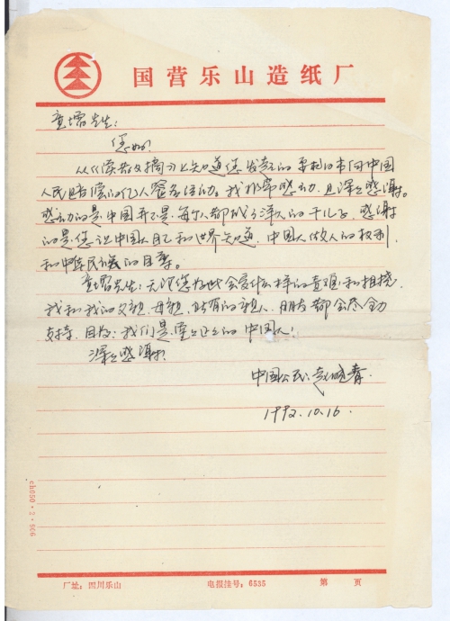 写信日期:1992-10-16