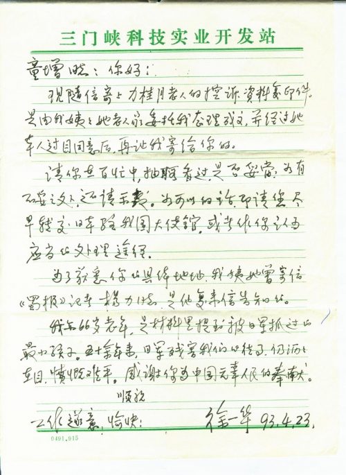 现随信寄上力桂月老人的控诉资料复印件。是由我姨姨她老人家委托我整理成文,并经过她本人过目同意后,再让我寄给你的。
