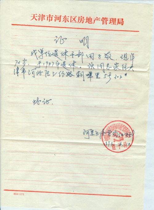 中国共产党天津市南河东区房地产管理局委员会组干科(章)
