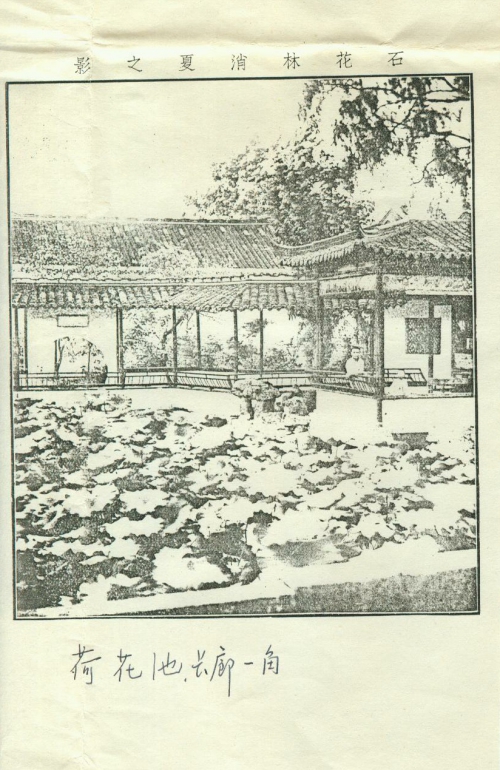 从“记石化林之被焚”、“乡书告余前岁虞山失陷,余园宅已化焦土,盖先洗劫财物书籍,而后焚我园宅以掩迹,所余者厨下耳”这两首诗中详细地描述了一个日本军官对我家宅的劫掠和焚烧的前后过程。文中提到的“石化林”,是我家花园的名字,在常熟虞山附近,占地约十亩。建于1919年,被毁于1937年。有两层楼的西式房一幢,平房二十间左右。仿苏州园林格局,长廊、荷花池等亭园建筑。