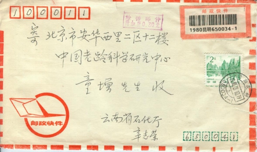 早已经给您寄出的信,因为只写了邮编100000,北京老龄科学研究中心,“因地址不明退回”。今天才查到您的地址,邮编,再次寄出。