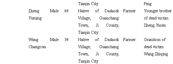 Representatives of victims Zhang Deyin (hand print) Tian Beichuan(hand print)