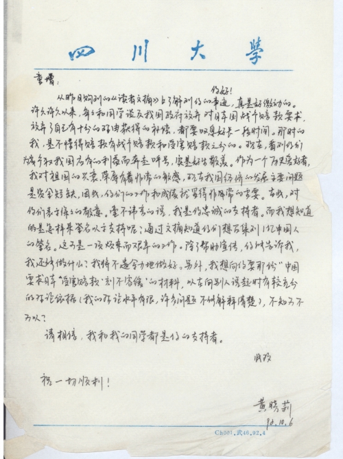 写信日期:1992-10-06