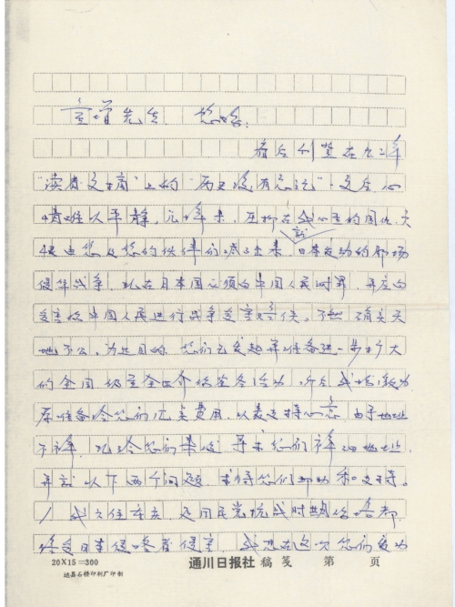 看到刊登在九二年“读者文摘”上的“历史没有忘记”一文后,心情难以平静,几十年来,压抑在我心里的国仇,家恨由您及您的伙伴们喊了出来,就日本发动的那场侵华战争,现在日本国必须向中国人民谢罪,并应向受害的中国人民进行战争受害赔偿。不然,确实天地不公,为达目的,你们已发起并准备进一步扩大的全国的并全世界的签名活动,听后,我十分激动,原准备给你们汇点费用,以表支持心意,由于地址不详,现给你们来信,寻求你们详细地址,并就以下两个问题,求得您们帮助和支持。1、我原住重庆,是国民党抗战时期的培都倍受日本侵略者侵害,我想在这次你们发动的签名活动中,能为您们干点啥,希能来信联系。