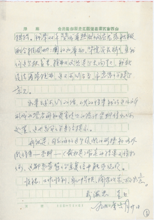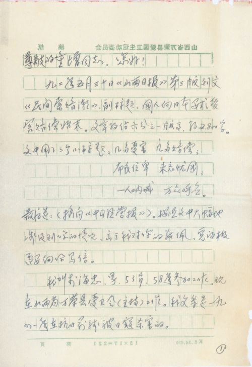 对你和你的助手陈健同志的壮举,我们这儿的广大民众,尤其是中年以上的人们无不称赞和感激。近期的夏收期间,我接触了好多人,大家一致认为你真了不起,你真有惊人的气魄。人们极为兴奋和激动。因为我们这里也是重灾区,所以,此潮在我们万荣县正不断地迅速扩展,大家称此风潮为“童增行动”。