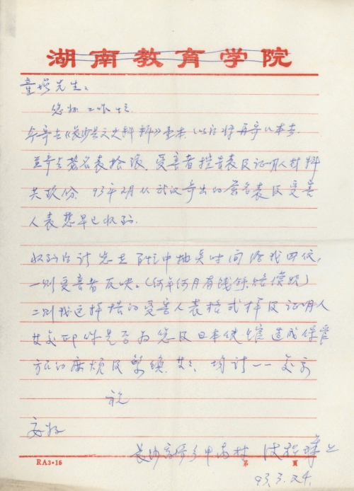 I am sending you a copy of Historical Data of Changsha County and will send more copies in the future. I am also sending 10 signature forms, 9 accusation forms and witness materials. I think you must have received the signature forms and victim forms I sent you from Wuhan in February 1993.