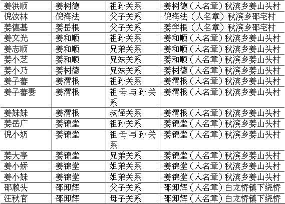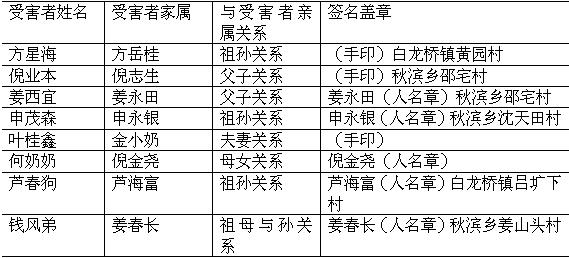 受害人:方星海、姜西宜、芦春拘、姜老顺、姜小芝、倪小奶等人