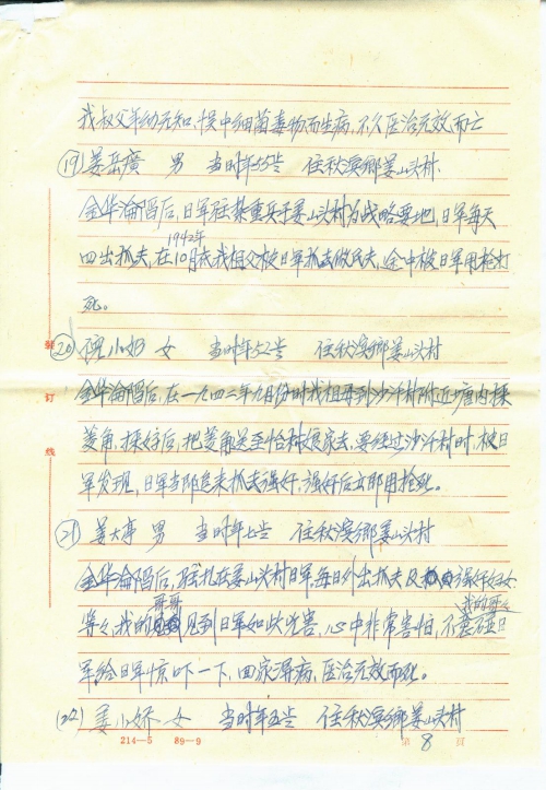 (20)倪小奶,女,当时年52岁,住秋滨乡姜山头村