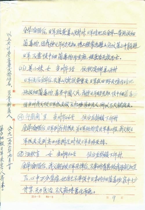 金华沦陷后,日军在金华县一带暗地施放下细菌毒物,毒害中国人民,不意我妹妹年幼无知,正中细菌毒物,不久就死亡。