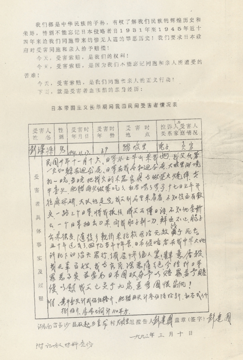 今天,受害索赔,是因为我们不能忘记同胞和亲人所遭受的苦难!