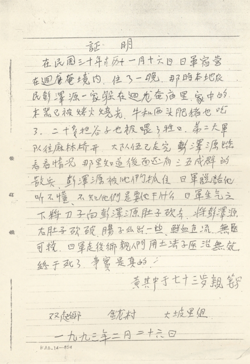 细节:1941年11月16日父亲带着一家躲避日本军的追杀结果当晚家中的家具以及所有财产被鬼子烧光。日寇还用刺刀向我父亲的肚子上刺去肠子都出来了医治无效死亡,我全家对日寇深恶痛绝要求赔偿我家所有的损失。备注:信封丢失