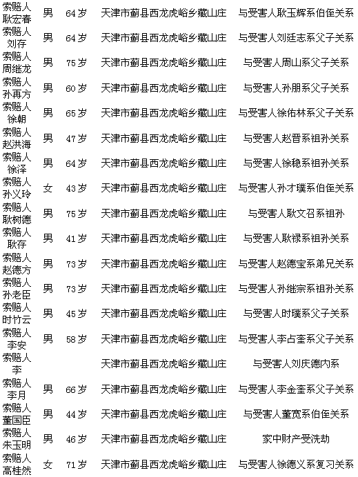 受害人:耿玉辉(耿宏春的伯父)、刘延志(刘存的父亲)、孙朋(孙再方的父亲)等多人