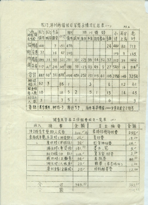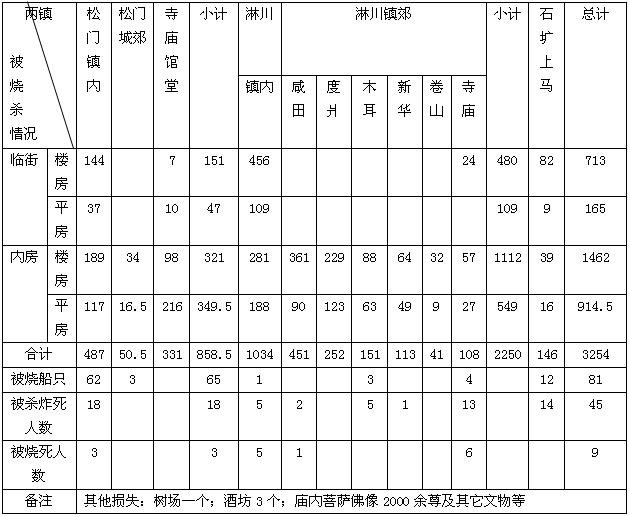 松门、淋川两镇被日军烧杀情况汇总表(一) 93.4