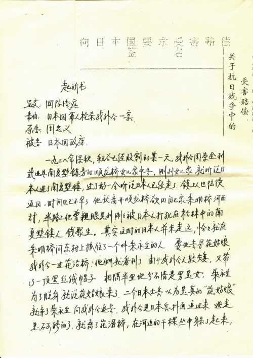 今寄上我外公被日本兵枪杀的经过,以及另一张签名表。还需要做点什么工作也望来信。