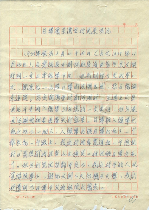A Personal Record of the Japanese Army Massacring the People of Wanli Village